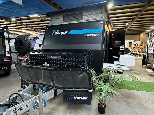 Externally this caravan has a DO35 coupling, large front toolbox with cargo top, drawer slides and 12v points for fridge. A large tunnel boot is located to the front of the caravan with a large pull-out drawer. Picnic table with Tv bracket and radio for outdoor entertainment. The slide out kitchen has a 3-burner cooktop and sink that slides away into a convenient tunnel compartment. Off road 4×4 independent suspension with heavy duty springs and shocks will take you on adventures off the beaten track.