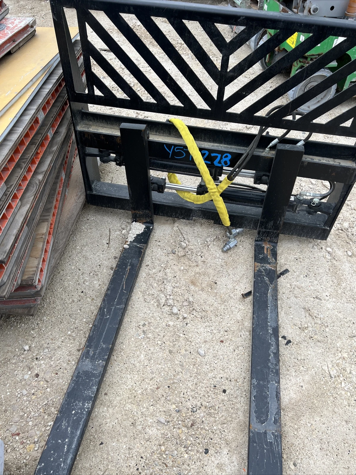 Skid Steer Forks Hydraulic Adjustable universal Cat Bobcat John Deere Gehl.